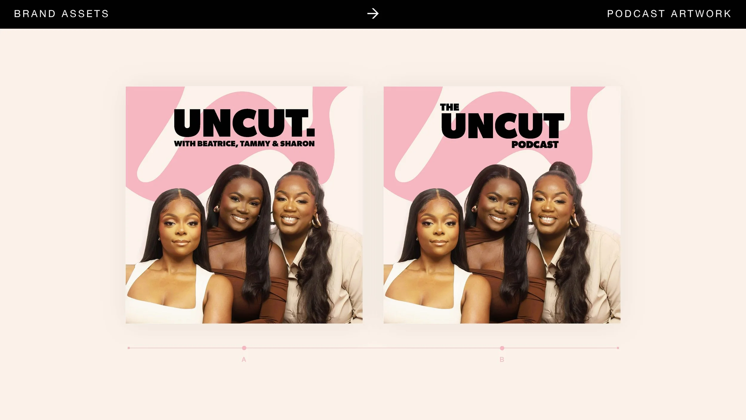 Formerly known at The BTS Podcast, the trio wanted a new name and identity following their exponential growth, climbing from 10k to 365k followers on Instagram in 12 weeks, reaching over 5m accounts monthly and showing no signs of slowing down. A full brand and identity brief was completed, from name concepts, to art direction, to branding and final design outputs across podcast artwork, live shows, social media and more. Introducing The Uncut Podcast. Raw, edgy, unfiltered and bold!
